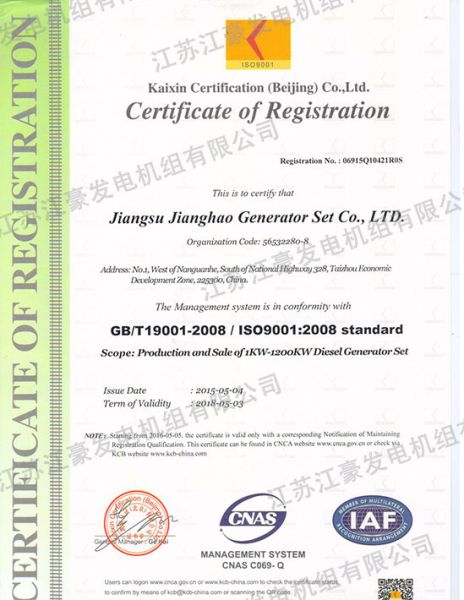 | 销售单位: 江苏江豪发电机组有限公司 |