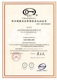 职业健康安全管理体系认证证书