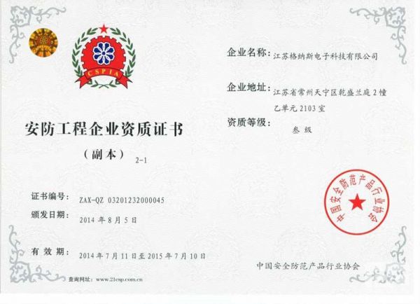 产品名称: 安防工程企业资质证书 |