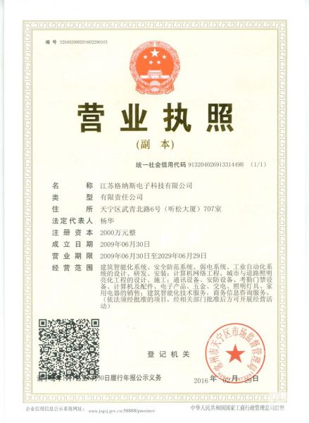 | 销售单位: 江苏格纳斯电子科技有限公司 |