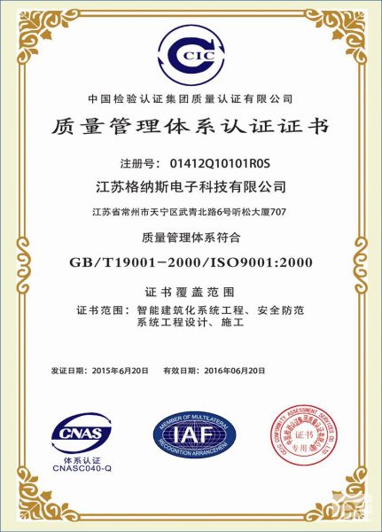 质量管理体系认证证书 发布时间: 2017-07-04 18:10:32 发布网站: 中国电力物资网