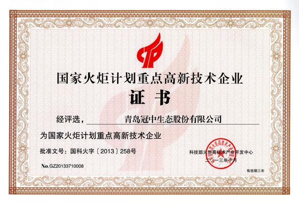 产品名称: 国家火炬计划重点高新技术企业证书 |