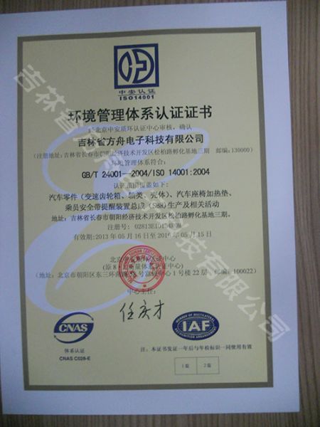 环境管理体系认证证书 发布时间: 2017-07-14 11:38:31 发布网站: 中国电力物资网