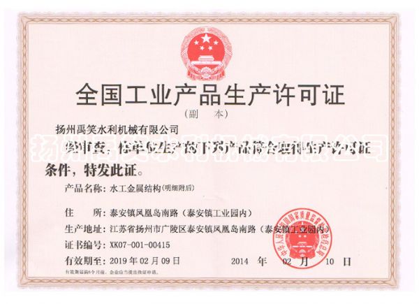产品名称: 全国工业产品生产许可证 |