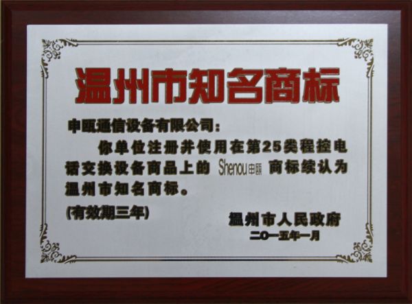 产品名称: 2015年 温州市知名商标 |