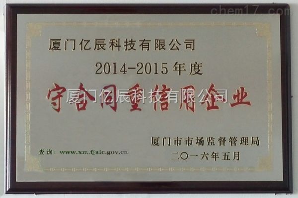 厦门市“守合同重信用企业”荣誉牌匾