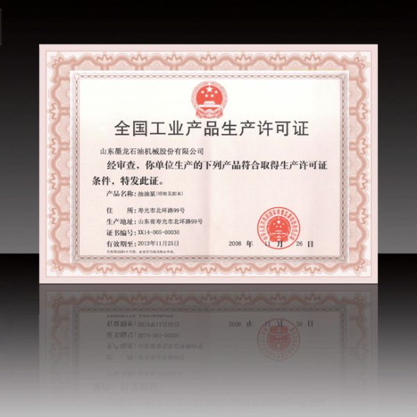 产品名称: 全国工业产品生产许可证(抽油泵)