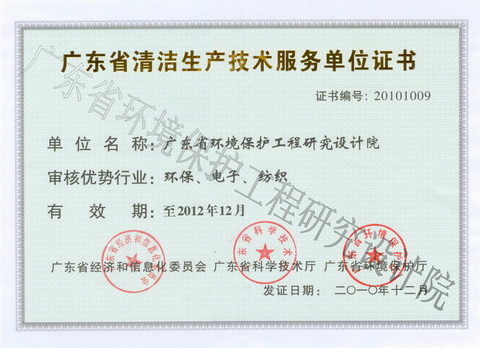 广东省清洁生产技术服务单位证书 发布时间: 2017-07-18 14:35:28 发布网站: 中国电力物资网
