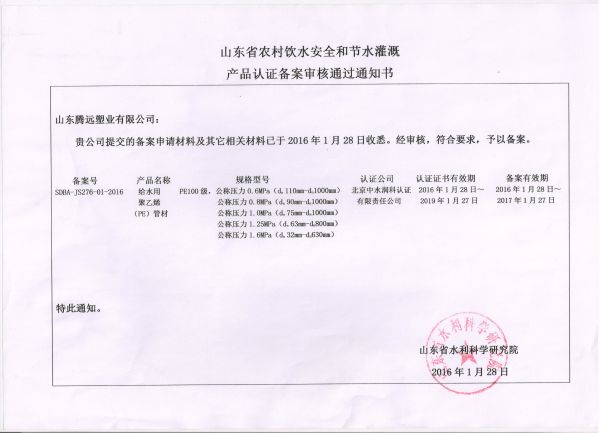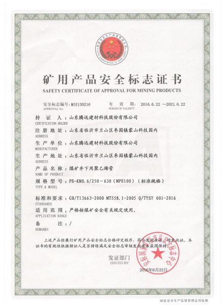 腾远股份,旗下下设山东腾远塑业有限公司、山东联邦塑胶股份有限公司,拥有有山东、河北、辽宁、甘肃、湖南五大生产基地,专业生产PE给水管材、PE燃气管材及PE阻燃、抗静电矿用管材、PE地源热泵管材、PE虹吸排水管材、PERT地暖管材以及配套PE给水管件、PE燃气管件、PE阻燃、抗静电矿用双抗管件、PE地源热泵管件、PE喷塑防腐钢法兰片、PE球阀、PERT地暖管件、PE虹吸排水管件等系列产品的高新技术企业。 公司总占地面积300余亩(山东生产基地占地面积80亩),总公司位于山东省临沂市兰山区枣沟头集西工业园,距离临沂河东国际机场仅20公里,建筑面积60000余平方米,拥有固定资产8000多万元,现有员工390多人,专业技术人员36名,工程师12名,高级工程师4名。公司拥有国际先进水平全电脑控制¢20-¢1600各类PE管材生产线32条,拥有专用注塑机以及各种辅助设备90余台套,...... [ 查看详情 ]