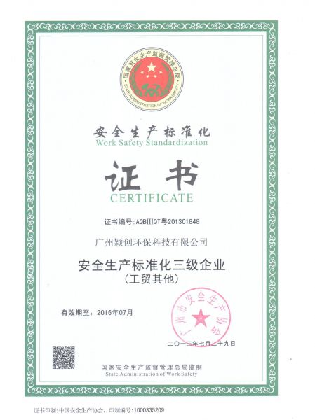 产品名称: 安全生产标准化证书 |