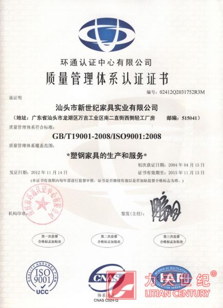 产品名称: ISO质量体系认证证书 |