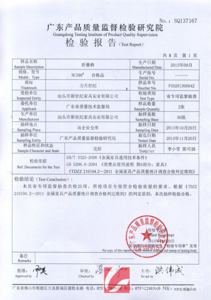 折叠椅检验报告 发布时间: 2017-07-31 15:31:48 发布网站: 中国电力物资网