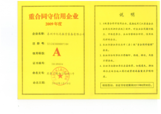 产品名称: 重合同守信用企业2009年度 |