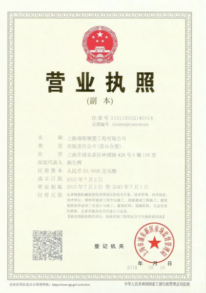 您好,欢迎访问上海福银钢筋工程有限公司 网站。 技术支持:中国电力物资网,中国最具价值的电力招标采购门户网站!