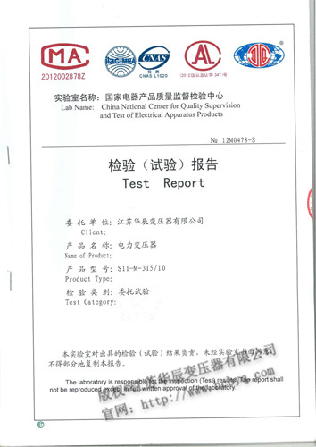 检验报告S11 发布时间: 2017-08-07 16:38:35 发布网站: 中国电力物资网