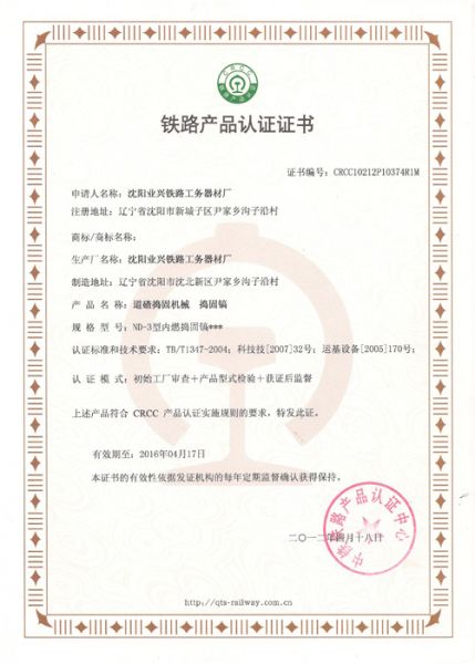 产品名称: 铁路产品认证证书1 |