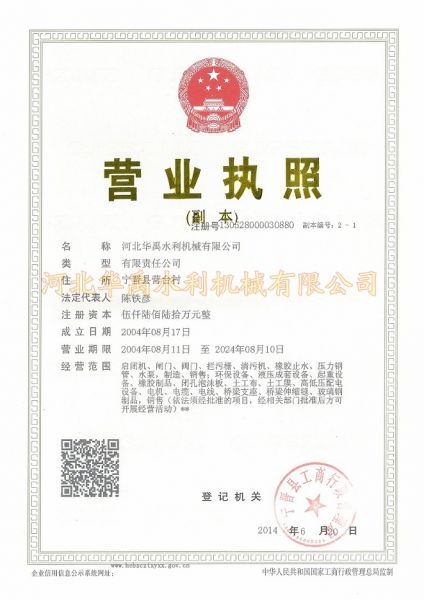 | 销售单位: 河北华禹水利机械有限公司 |